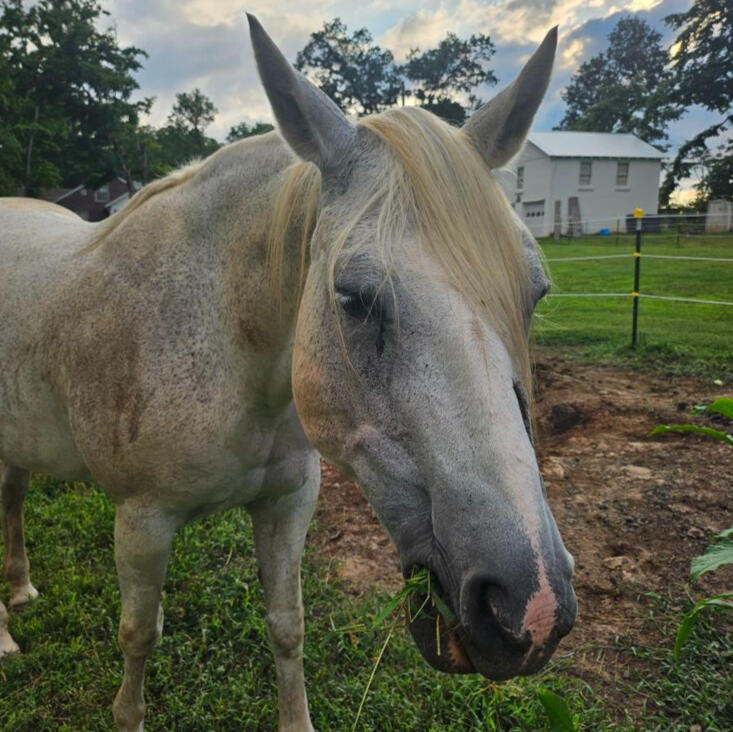 Meet Belle. She is our 21 year old Percheron/TB mare. She has participated in English competitions in the past. We look forward to her presence in our activities as a ground and pony ride horse.